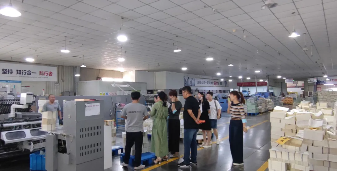 在我公司總經(jīng)理馬靜的陪同下,金度高管一行對我公司設(shè)計部、印前部、產(chǎn)品展示中心和生產(chǎn)車間、倉庫進(jìn)行了參觀走訪。對前端設(shè)計開發(fā)能力以及后端生產(chǎn)能力現(xiàn)場進(jìn)行了詳細(xì)的考察,仔細(xì)詢問了生產(chǎn)流程及配套服務(wù),查看了智能ERP管理體系和生產(chǎn)車間現(xiàn)場管理體系,通過與金度生活多年的合作及本次現(xiàn)場走訪,體現(xiàn)了基因完全可以提供對金虎產(chǎn)品的開發(fā)和生產(chǎn)服務(wù)能力。